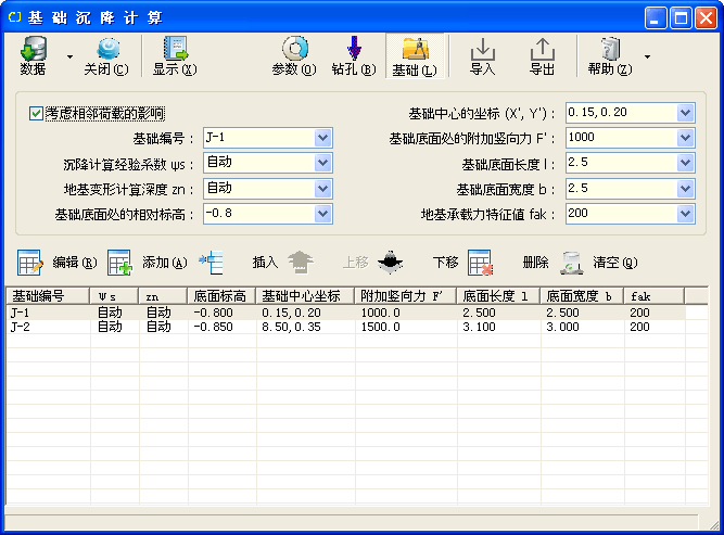 • 摘要:按规范分层总和法计算独立基础的沉降,支持邻近勘探孔数据调用及相邻荷载影响分析。